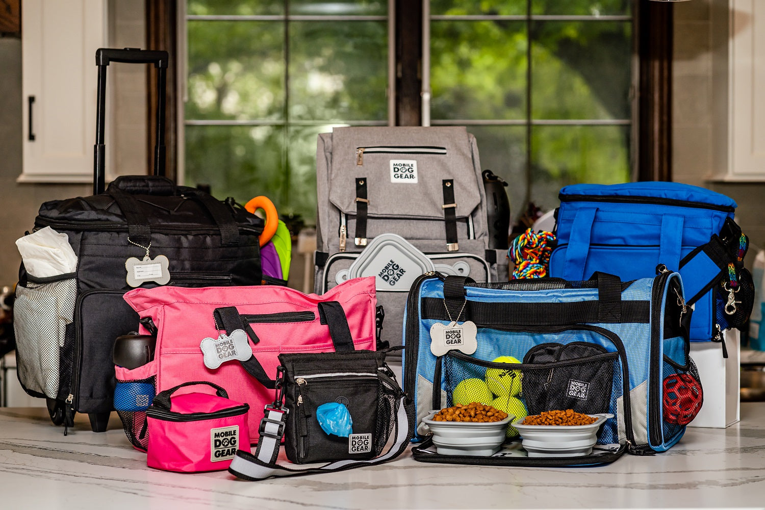We are Mobile Dog Gear, the creators of the FIRST EVER complete line of travel bags made specifically for people travelling with their furry best friend. In a world where everyone wants to be fashion forward, we knew we could create something brand new that would revolutionize the way people travelled with their dogs. It was extremely important to us that we made something that would really be functional for traveling pet owners, which is why we worked with veterinarians to create our patented travel feeding system that’s included in most of our bags. This feeding system consists of two silicone collapsible bowls, two insulated food/treat carriers and a non-stick feeding mat.